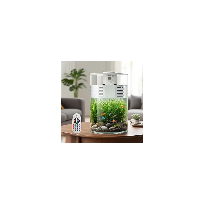 Aquarium avec Filtre et éclairage LED, Multicolore, 11 L / 3 gallons Complet Bocal Poisson, Petit Aquarium 360° Fish Tank pour P