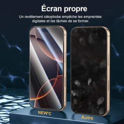 DESCRIPTION DU PRODUIT NEW'C Lot de 3, Verre Trempé pour iPhone 16 Pro (6,3 Pouces) Film en Protection écran efficace contre les Rayures - Ultra Résistant - HD Transparent - Outil d'installation facile inclus